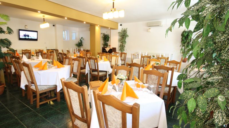 Masa se poate servi atat in restaurantul hotelului, amenajat in stil clasic, cat si pe terasa noastra care dispune de 20 de locuri.